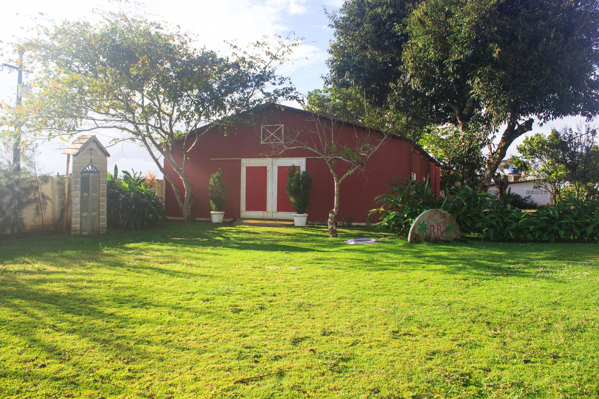 Realizamos eventos em nossos jardins, espaço gourmet e em nosso chamoso salão de eventos em formato de celeiro texano.